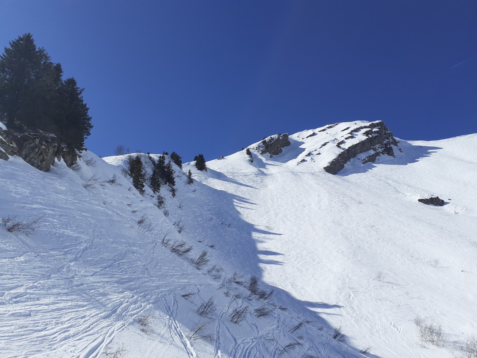 La descente en versant Nord est excellente, avec de belles portions de poudre encore immaculées entre les vernes. Je repeaute pour la dernière montée et me dirige vers la piste bleue du Lac. Je commence à caler physiquement et paie sans doute mon départ trop rapide. Je remonte à côté de la piste et rejoins rapidement le pied du Haut Fleury. Après avoir mis les skis sur le sac, je remonte le long de la crête Sud pour rejoindre le sommet à 12h. La descente sous le gazex est nettement moins bonne que les deux précédentes, en raison notamment du trop grand nombre de passages. Mais ça reste néanmoins sympathique. Je termine tranquillement sur les pistes et termine mon petit tour à 12h15, bien content d'avoir pris l'air avant d'aller au boulot.